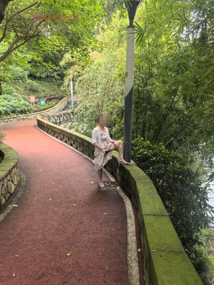 下午要求拔掉老婆的内裤,让她陪我逛公园。一开始她是拒绝的,后来只好服从主人命令,乖乖自行脱掉。边逛就边流水了,贱逼的淫水流到了大腿上,还摸起来让主人舔了。我抓住实际时机,要她捞起裙摆,掰开已经淫水泛滥的骚逼,玩起了露出。首次必须为爱妻和爱妻的贱逼的服从精神和配合点赞。